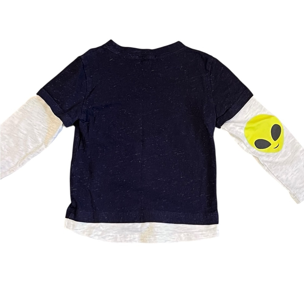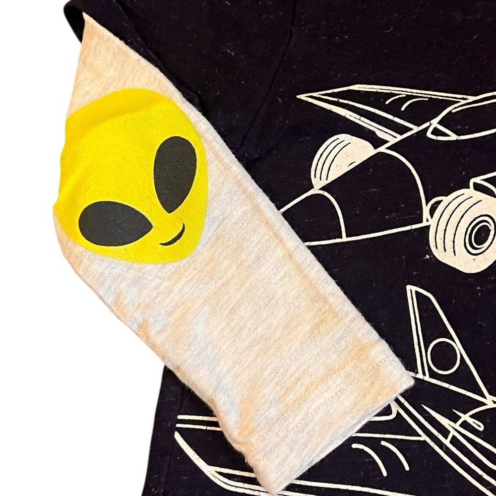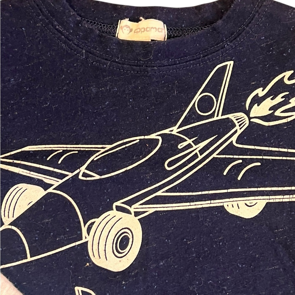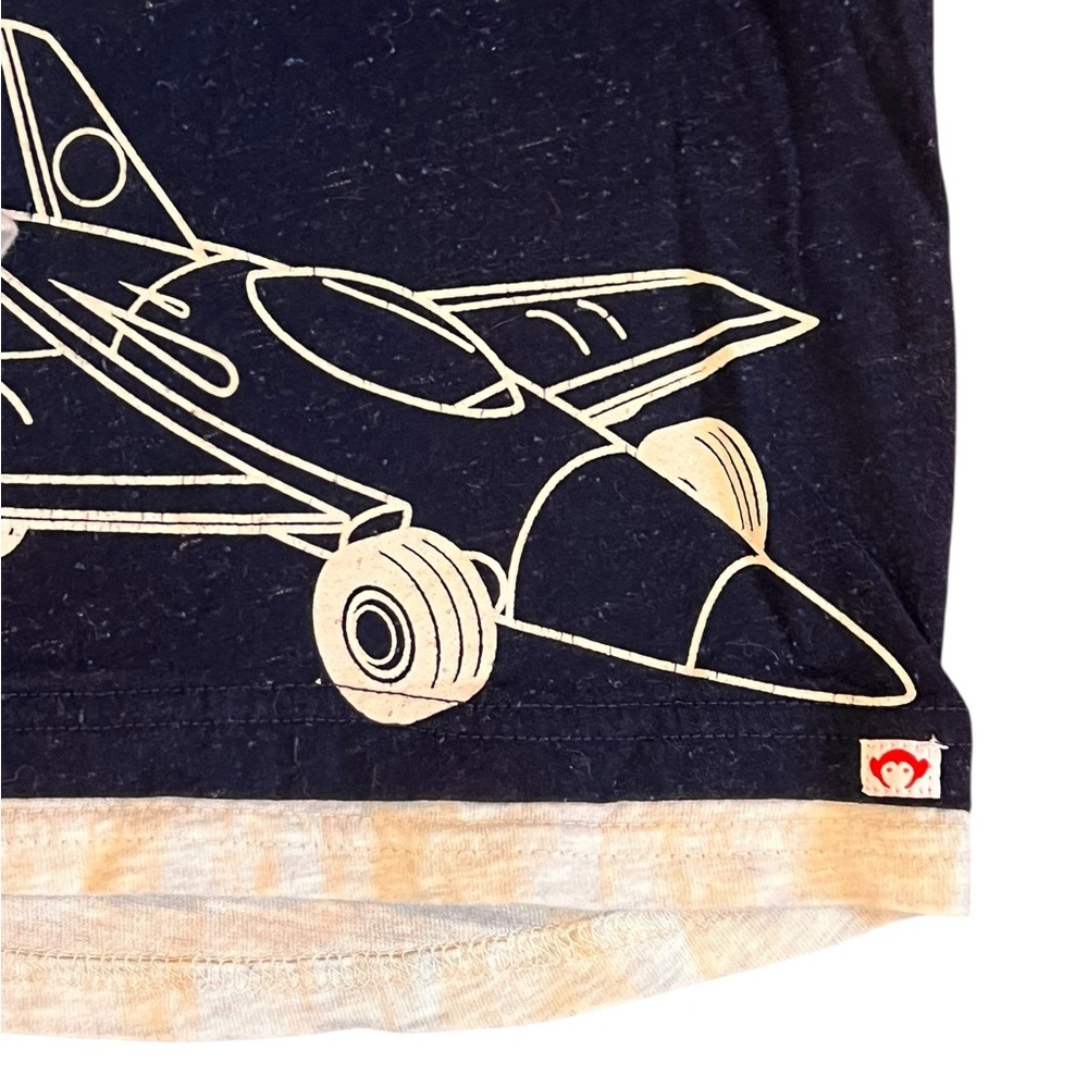 Navy tee with airplane and car graphic