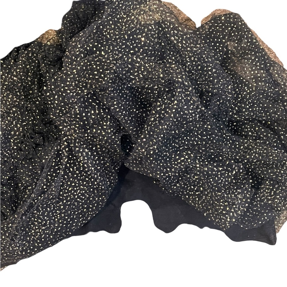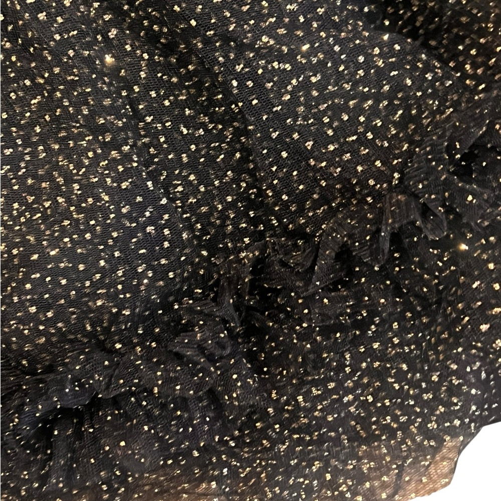 Ribbed cotton top with ruffles on sleeves and mock turtleneck