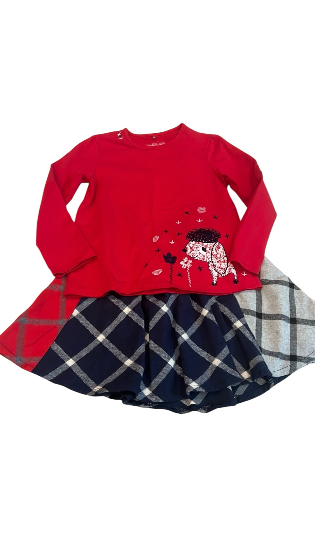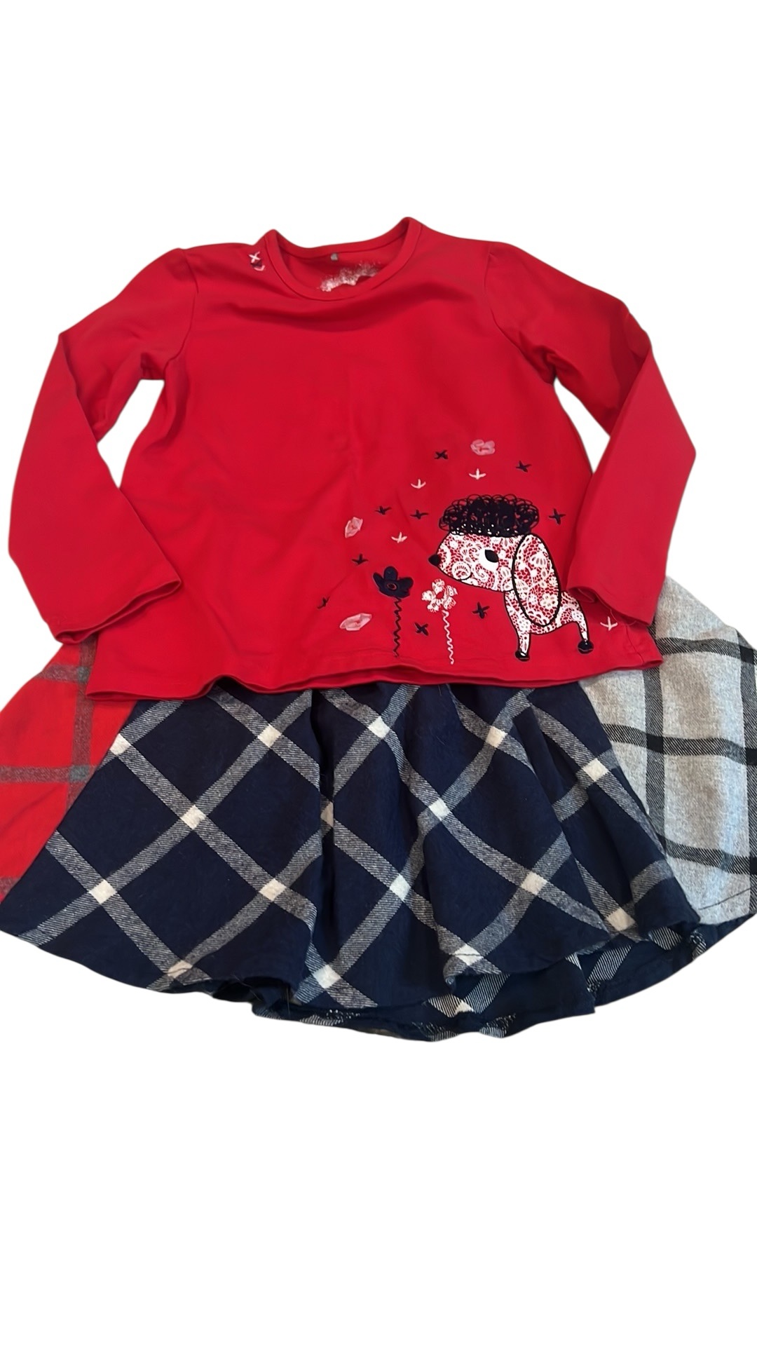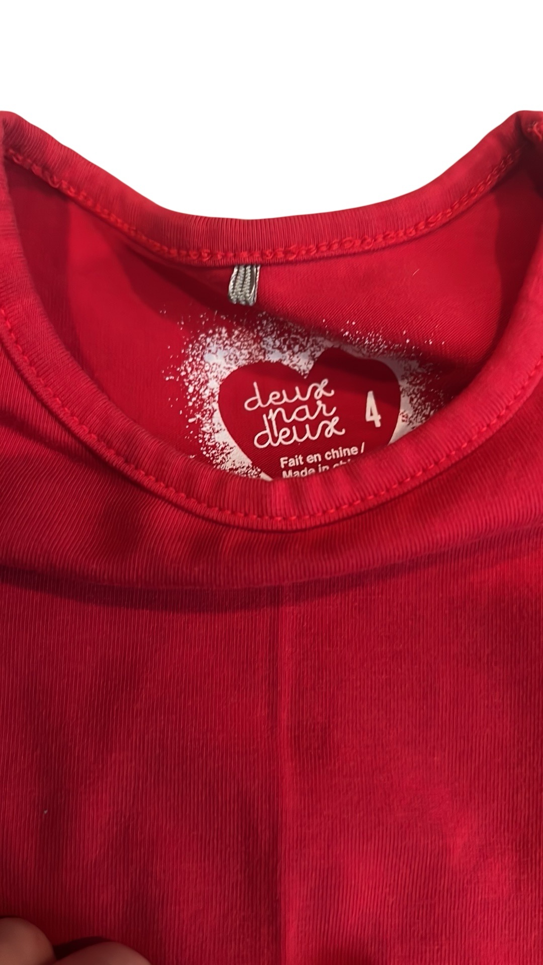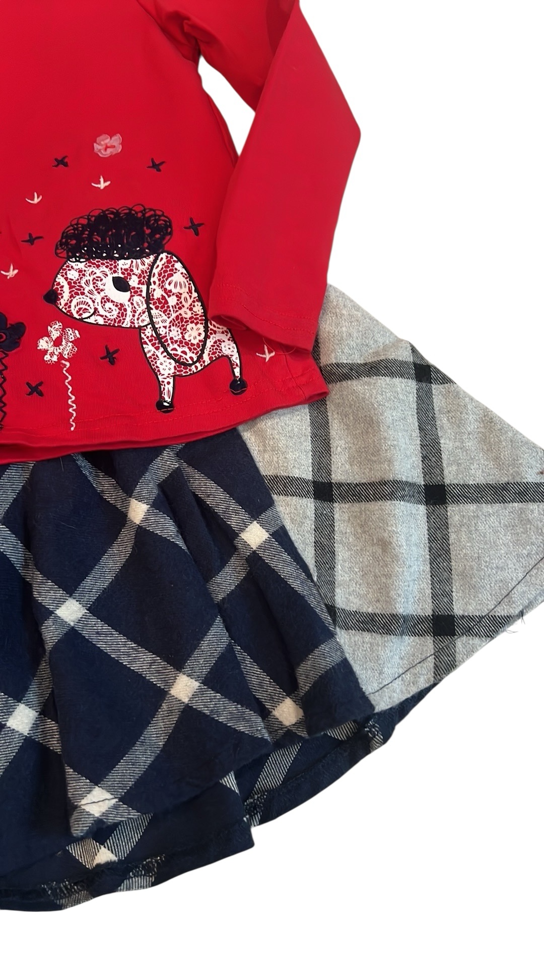 Adorable 2 pc outfit by Deux par Deux. Long sleeve super soft T-shirt. Poodle style flannel skirt with elastic waist, super soft. Size 4