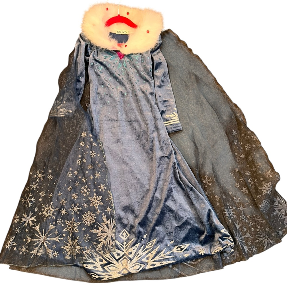Stunning blue velvet dress with tulle cape