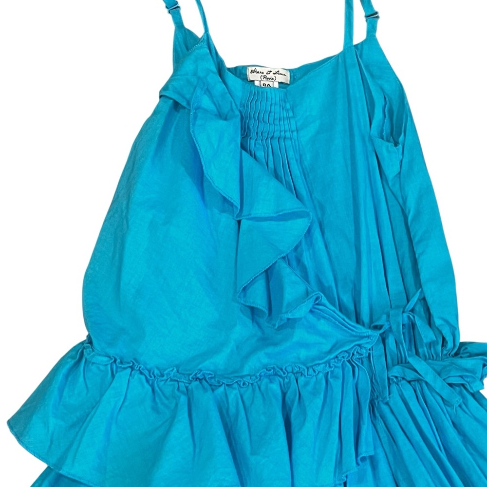 Delightful kids dress in a vibrant blue with charming ruffles.