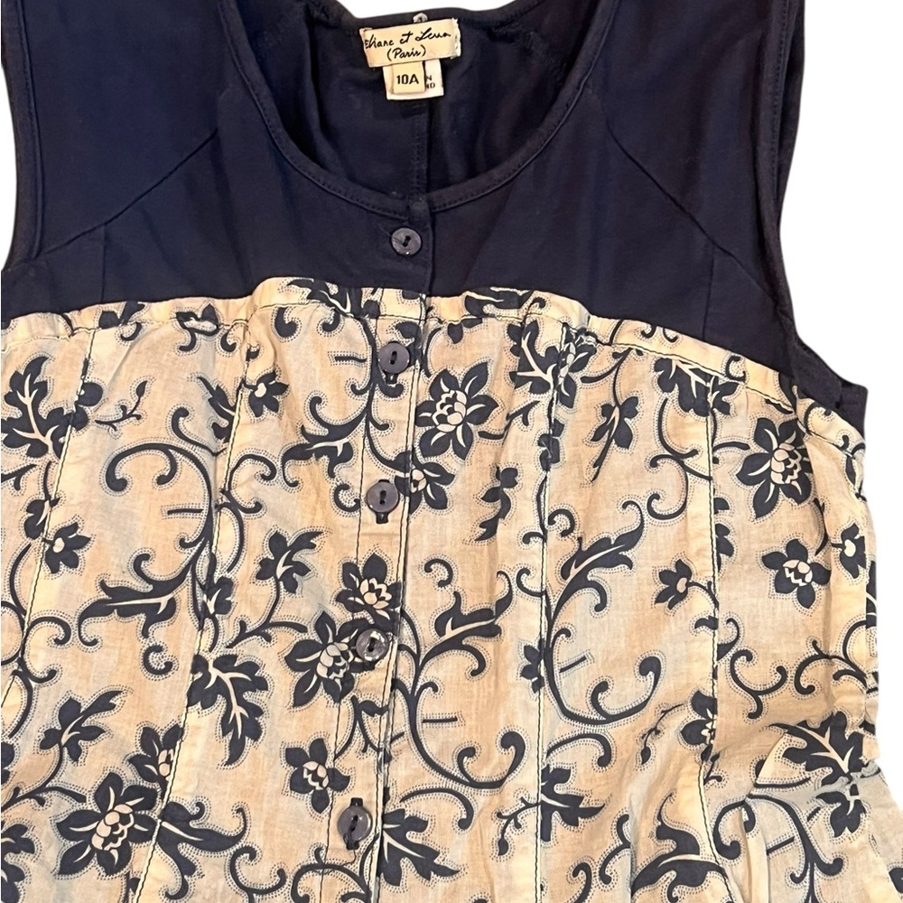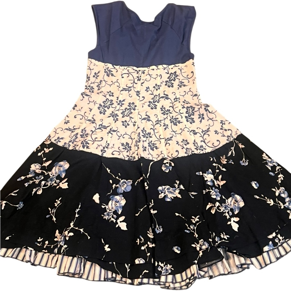 Eliana et Lena Navy and Cream Floral Dress, Size 10A