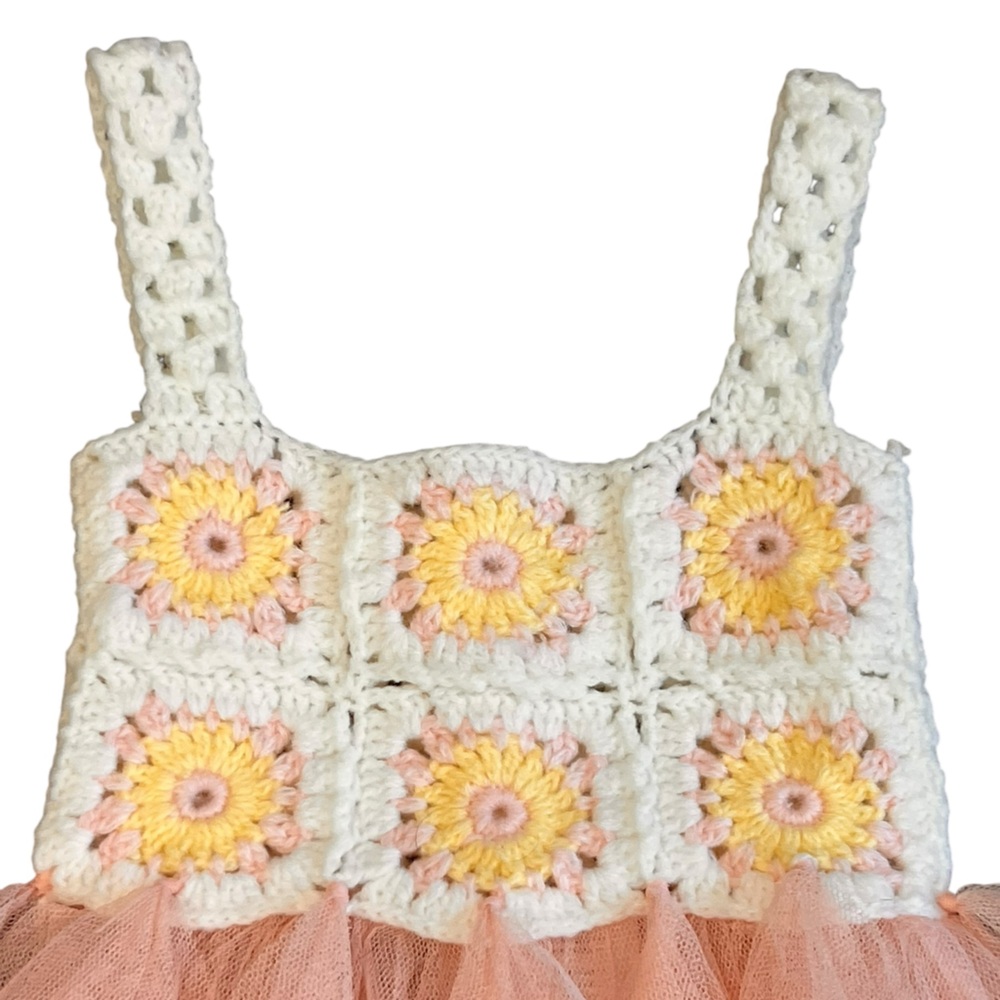 Delight in this charming pink and cream dress, perfect for casual outings. The crochet top adds a touch of elegance, making it a must-have for your child’s wardrobe.