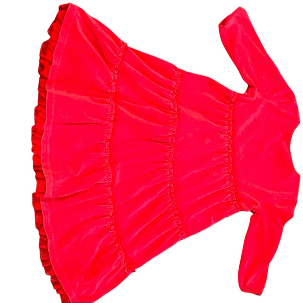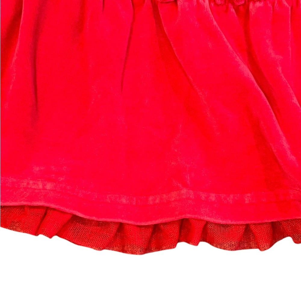 Soft and comfy tiered red velvet dress with lace detail