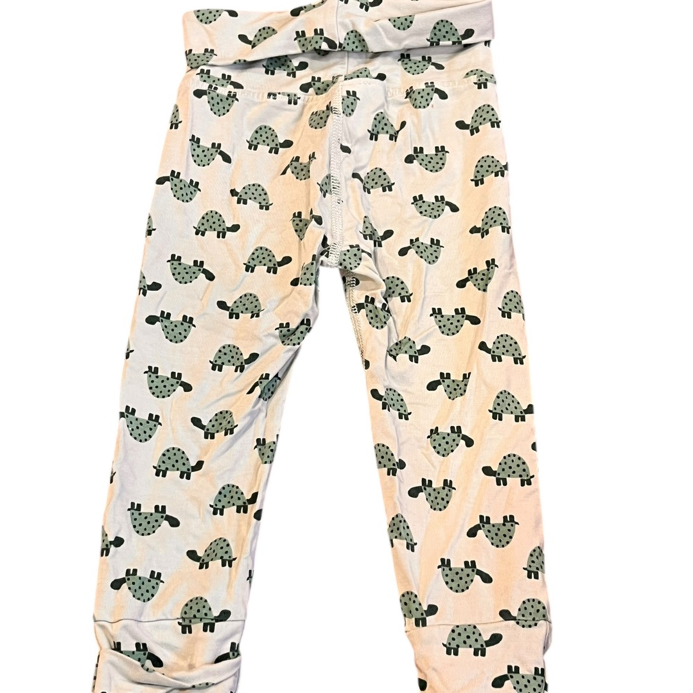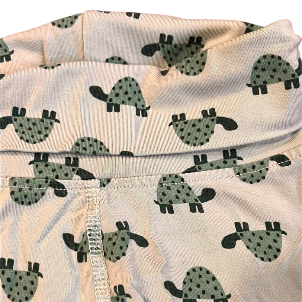Soft and lightweight mint green leggings with turtles