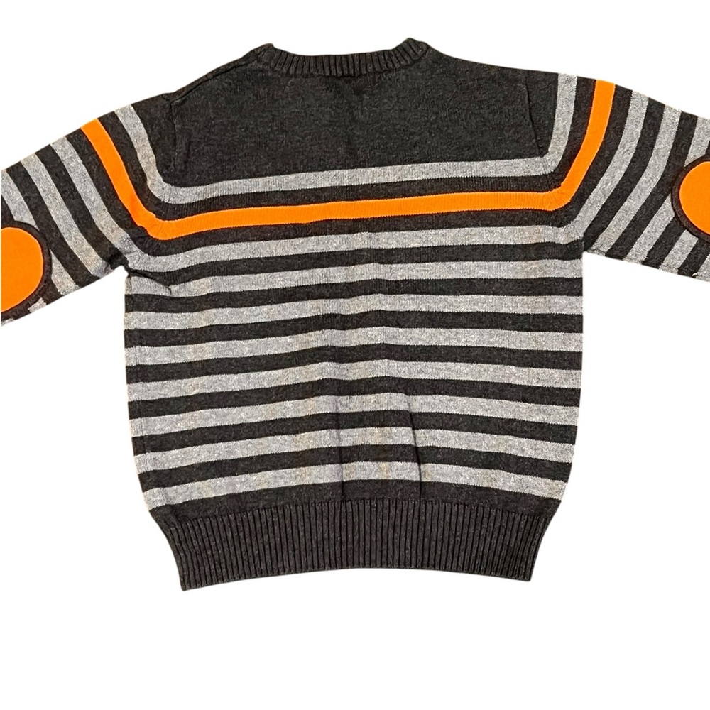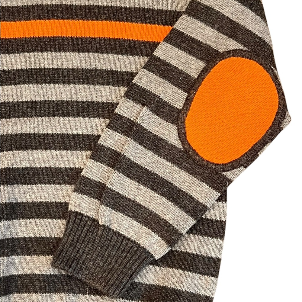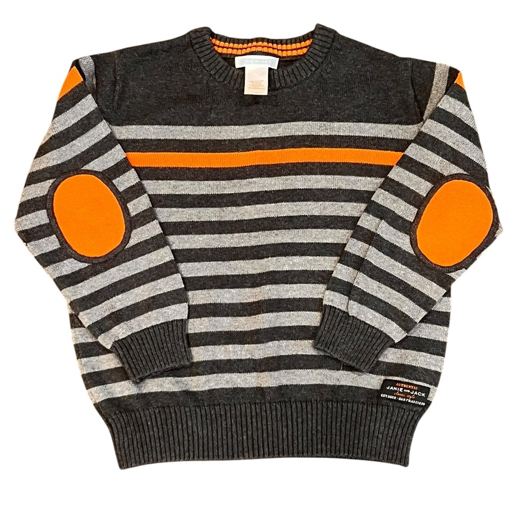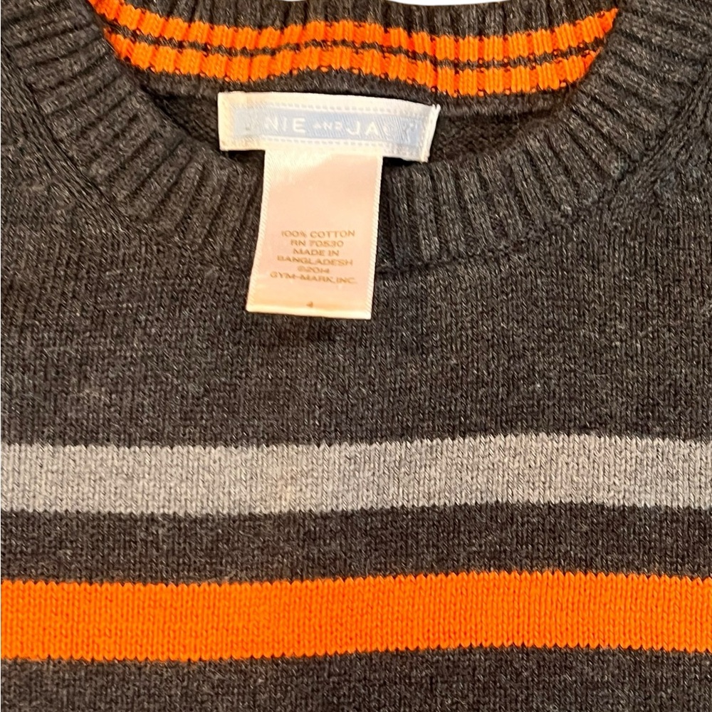 Janie and Jack, Boys Gray and Orange Striped Crewneck Sweater, Size 4