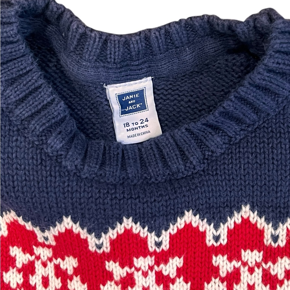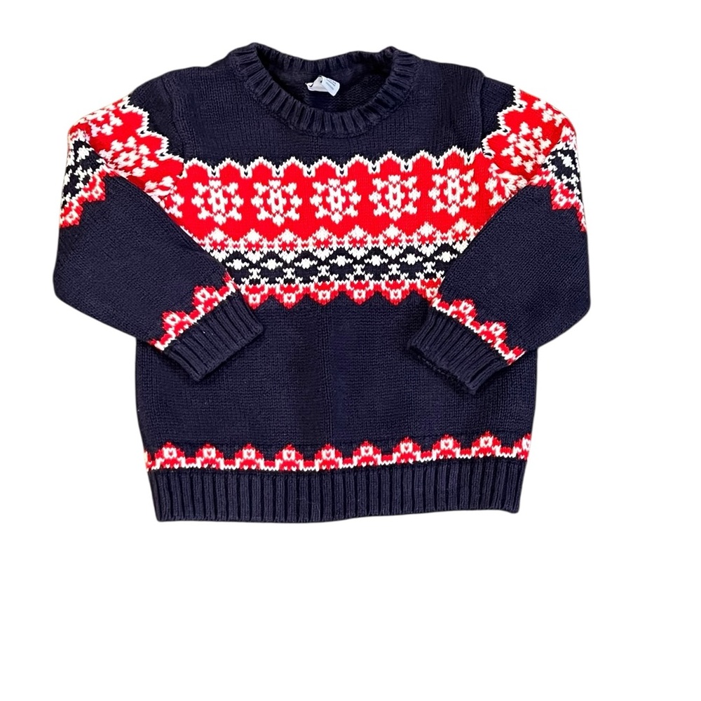 Janie and Jack,, Navy Sweater with Red Pattern, Christmas, 18-24 months