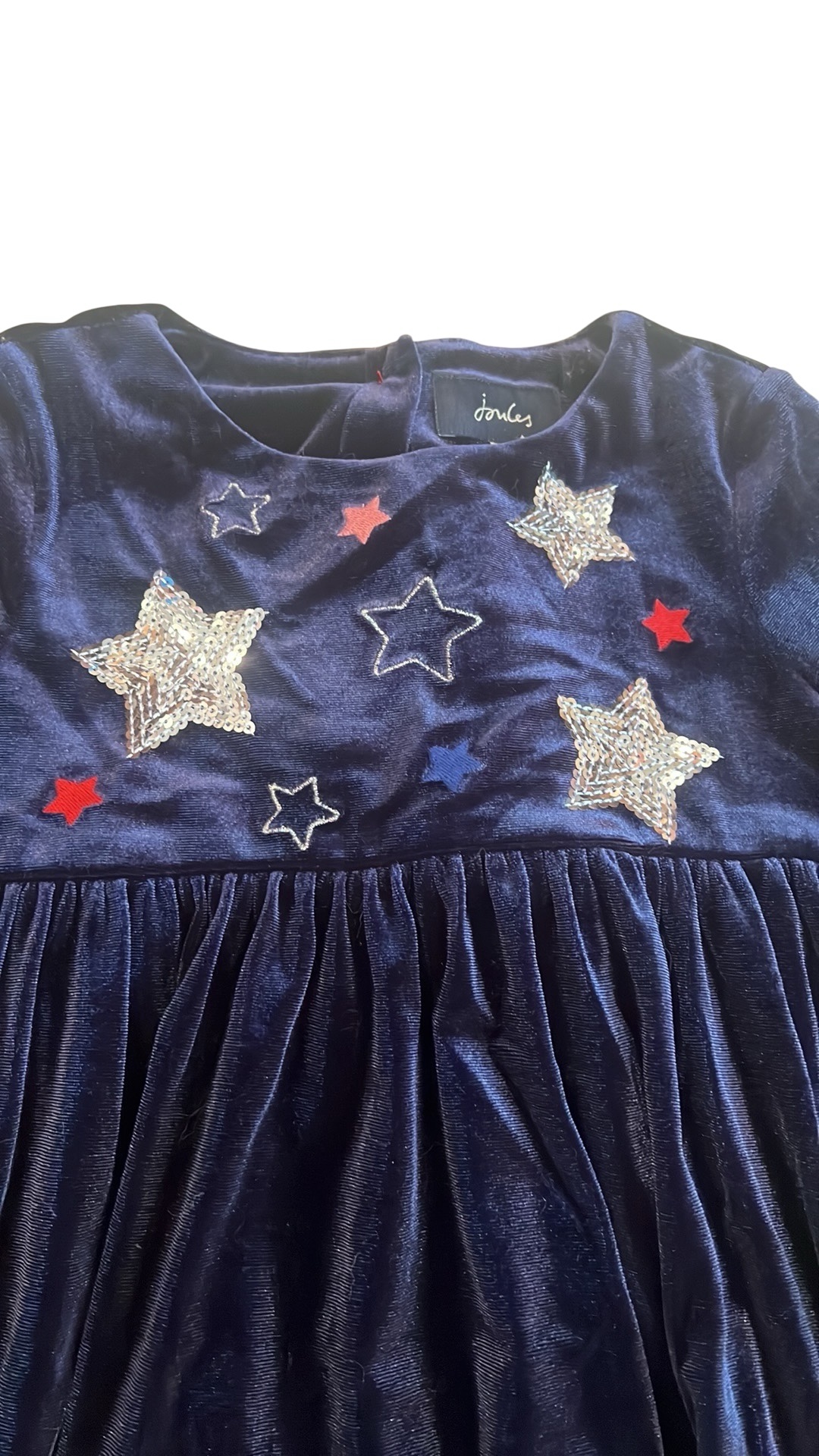 Adorable dark blue velvet dress with star sequins. Joules. Long sleeved. Twirly skirt. Size 6. Comfy and wearable—your daughter will love you!