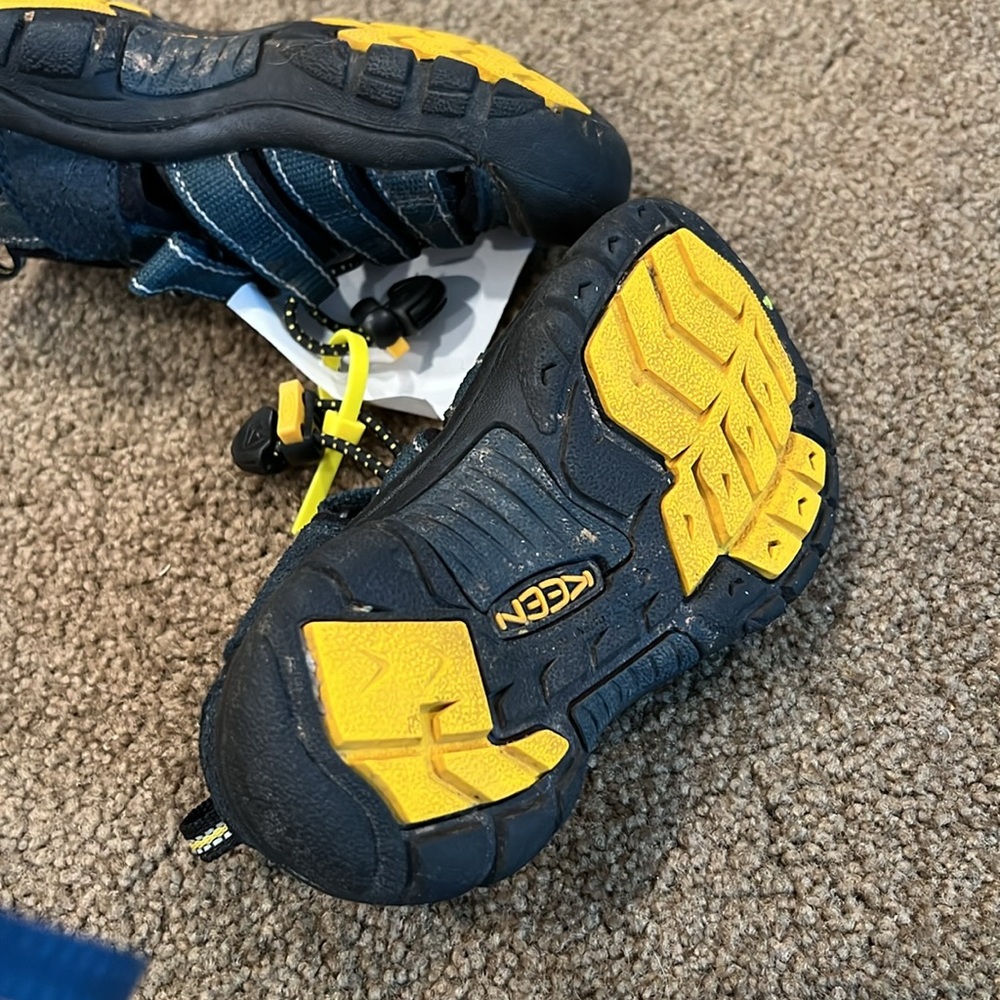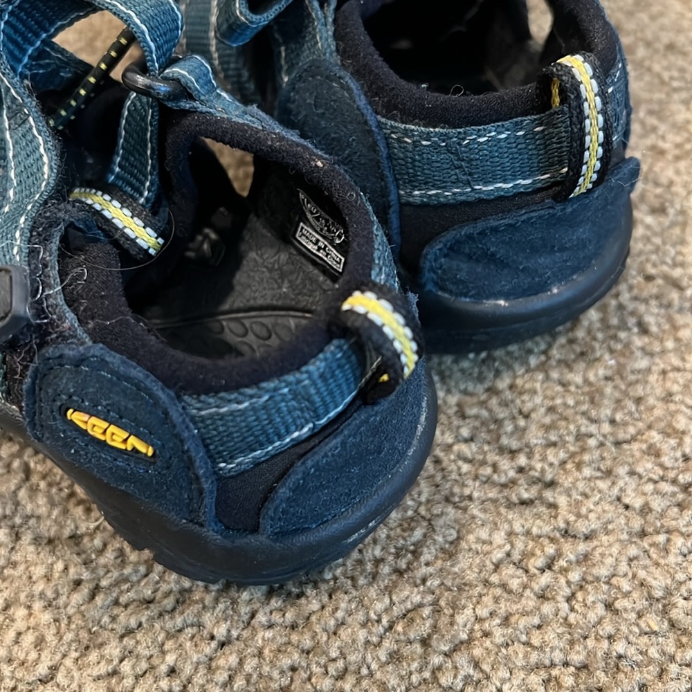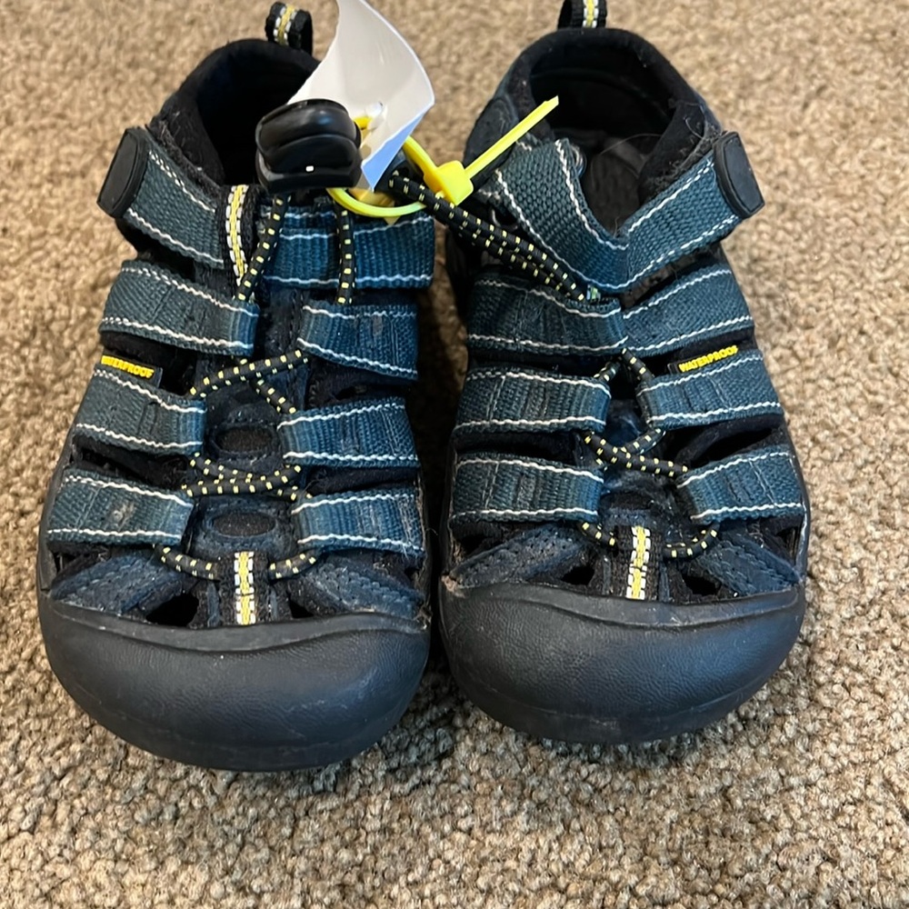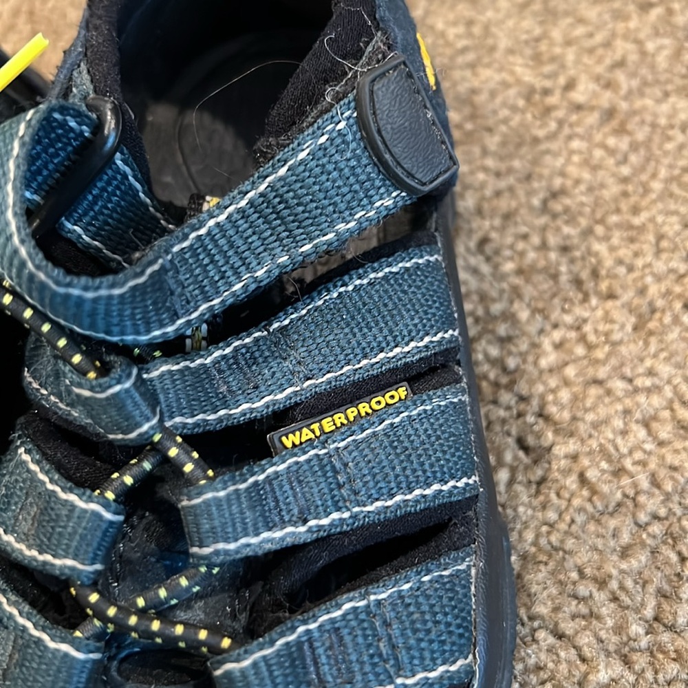 Navy and black hiking/water shoes by Keen. Velcro and elastic. Size 9
