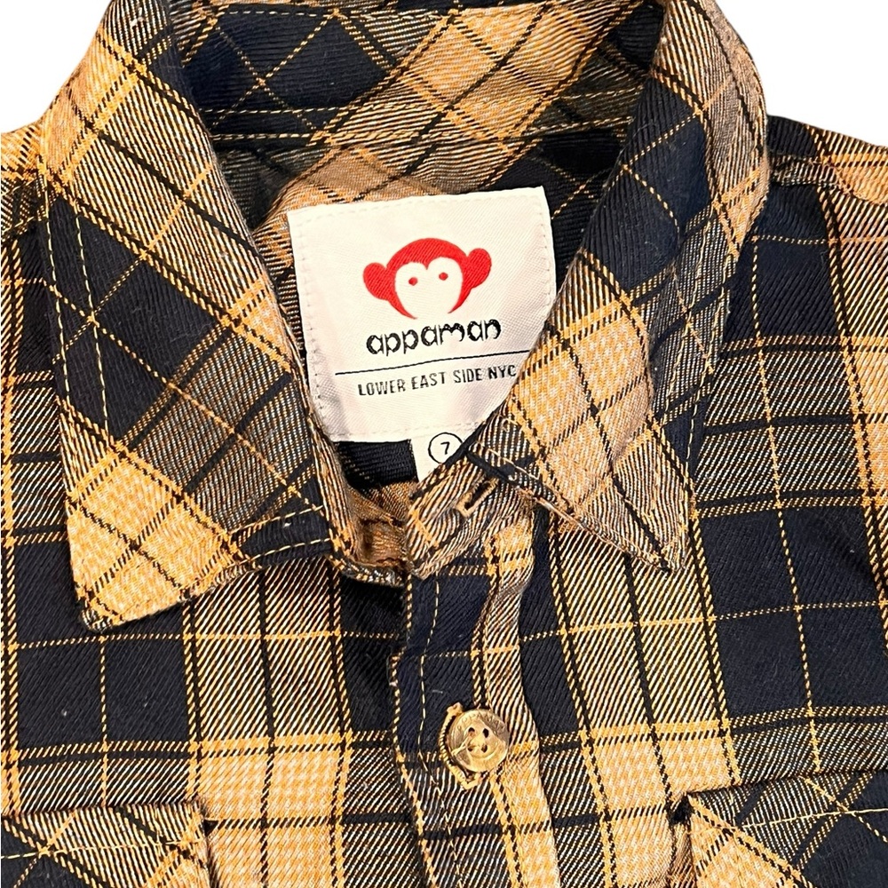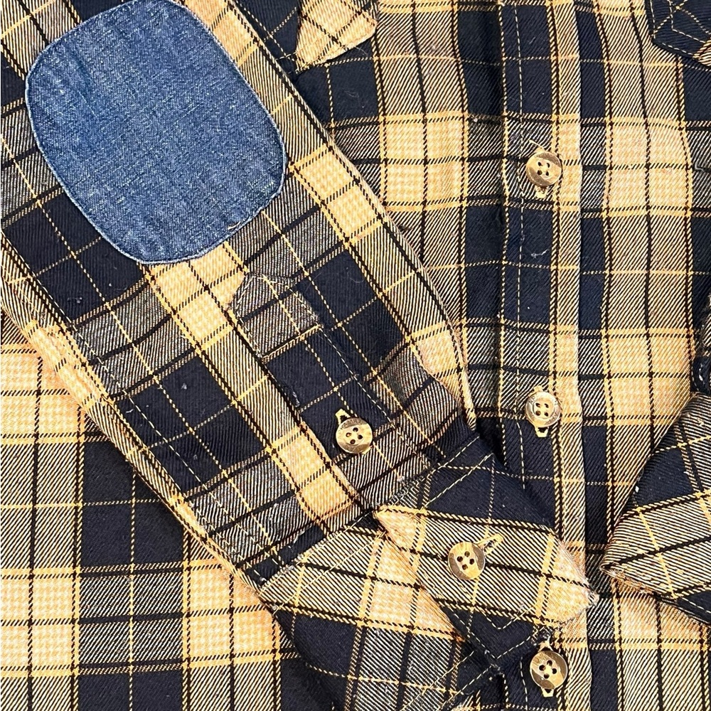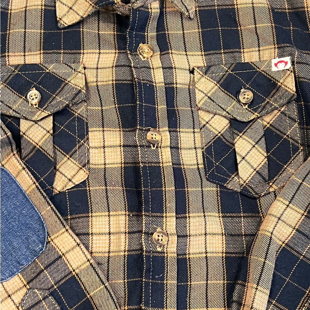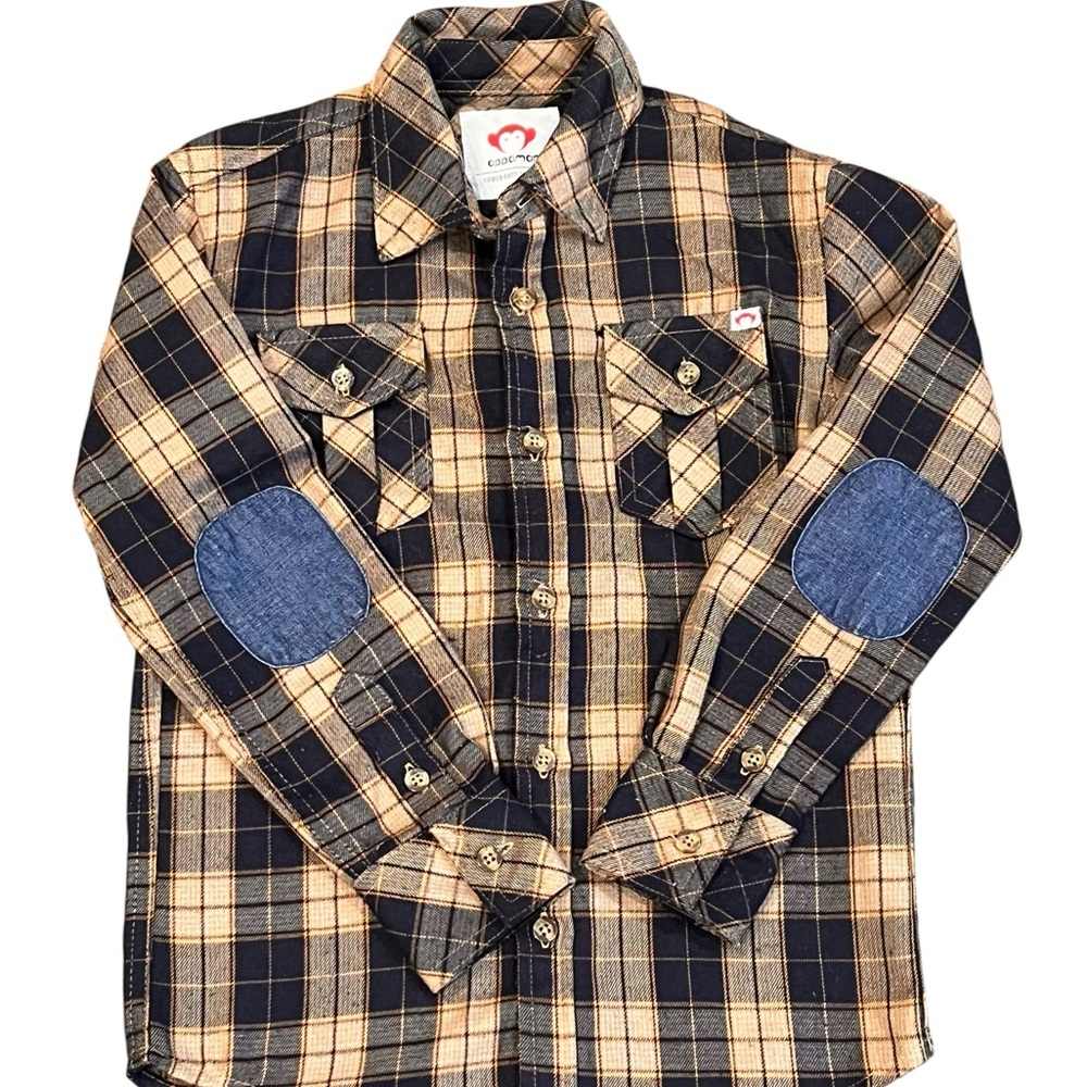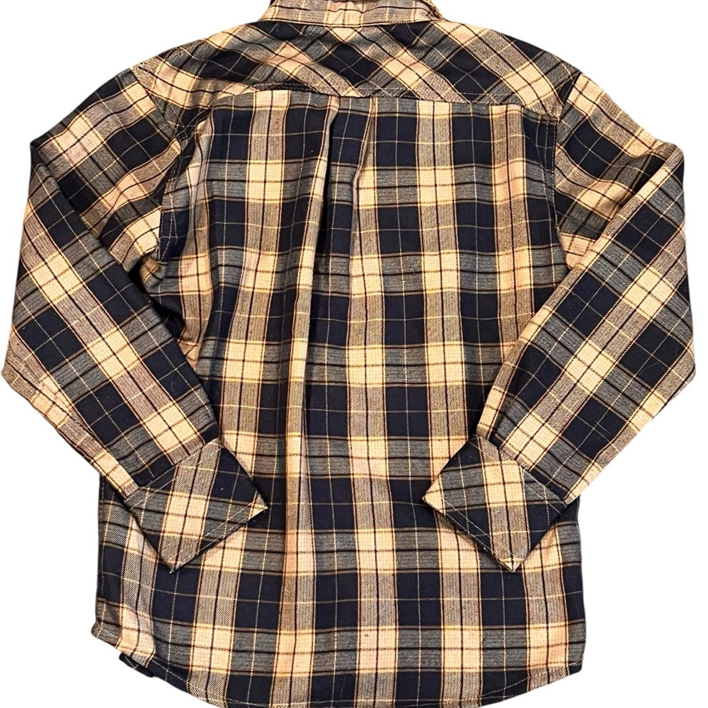 Boys navy and tan button down flannel shirt