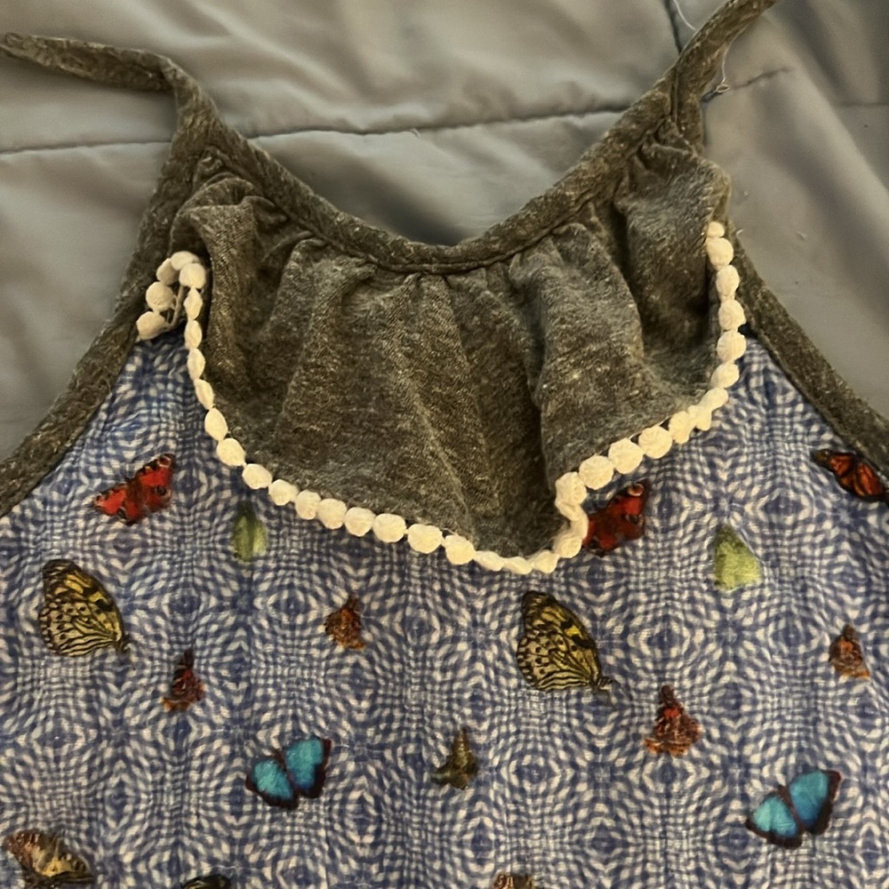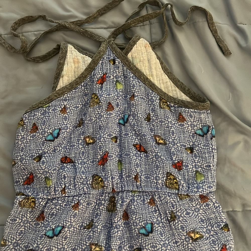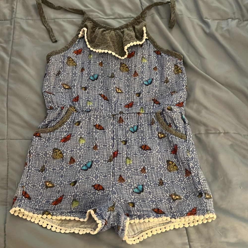Super soft and cozy girl’s romper by Miki Miette. Size 8. This romper is the perfect combination of style and comfort. Made with super soft mini terry fabric, this jumpsuit features spaghetti ties at the shoulders for an adjustable fit.