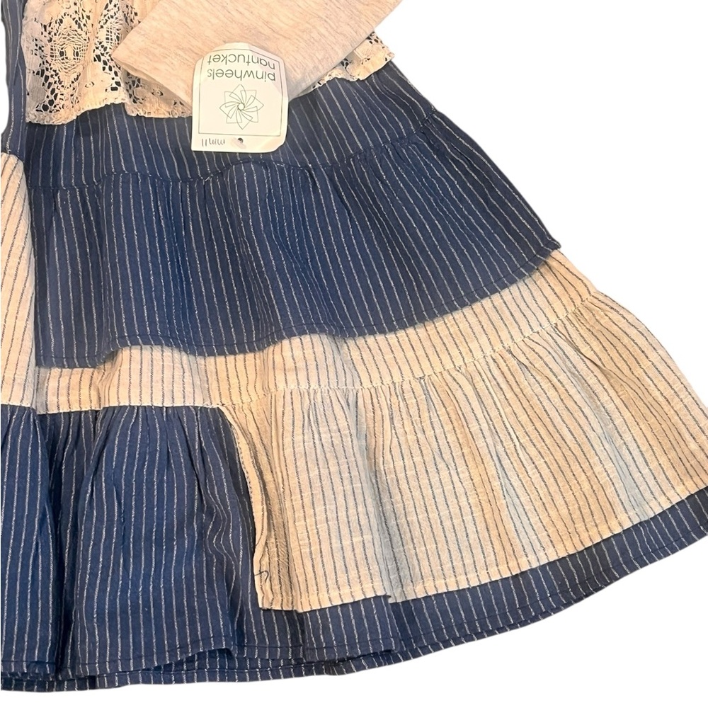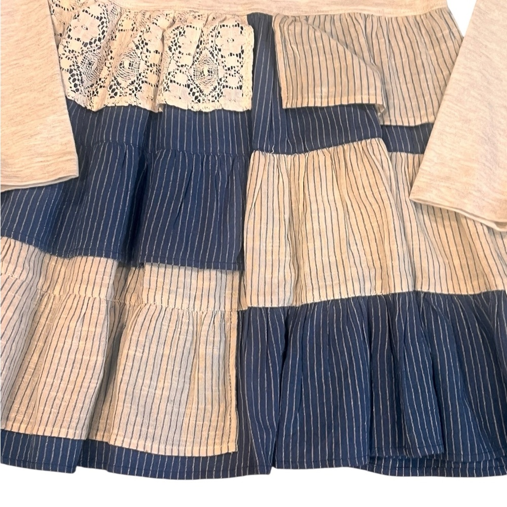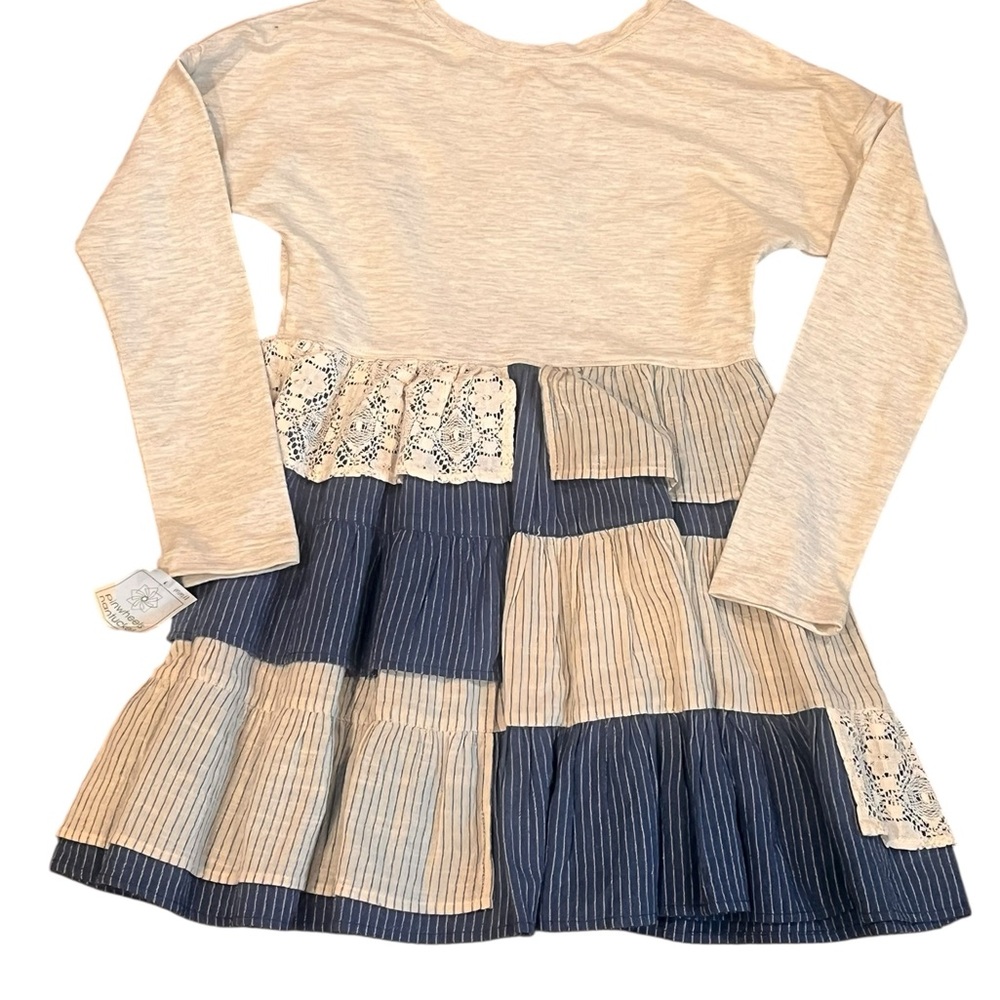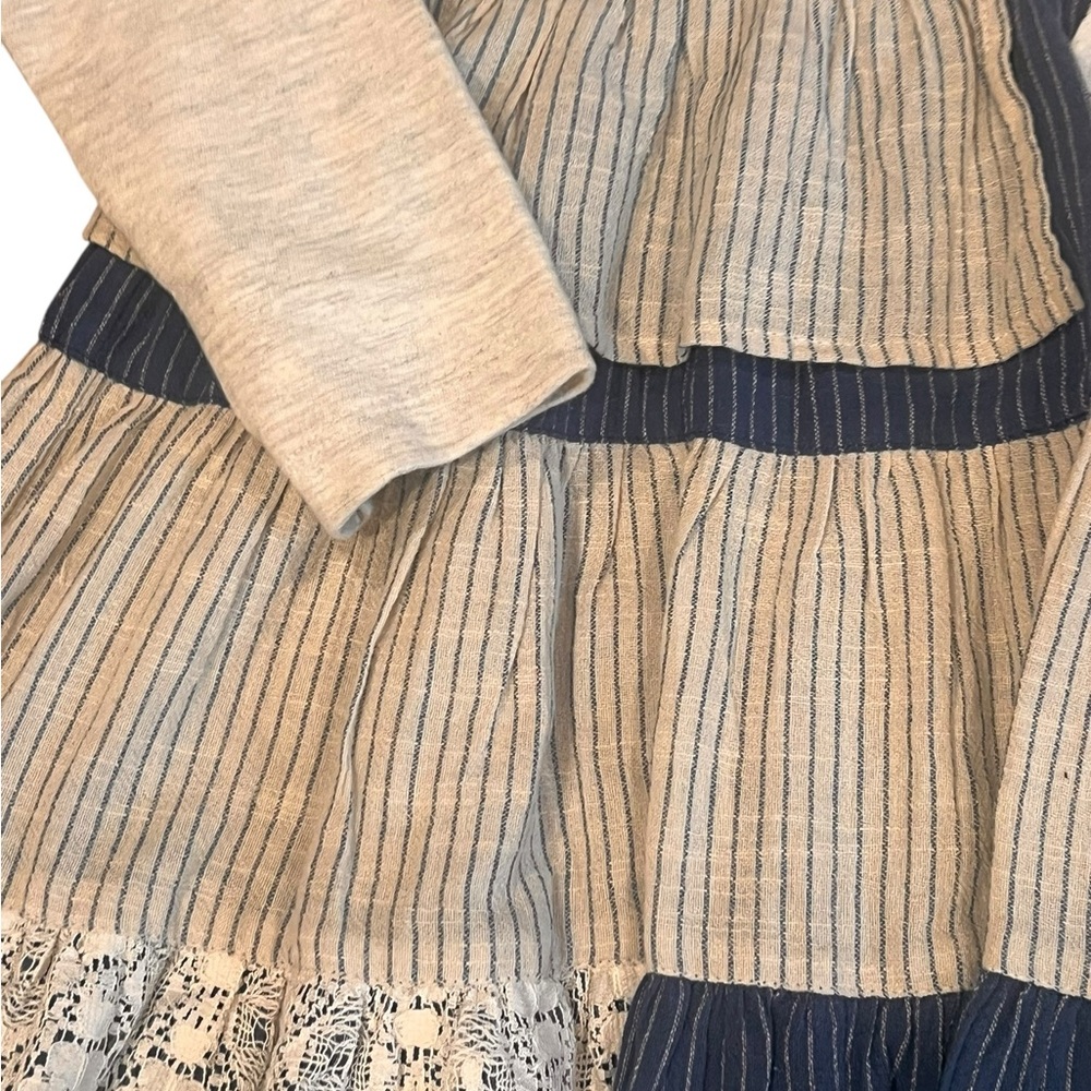 Girls tiered dress with comfy jersey top and layered linen and lace bottom