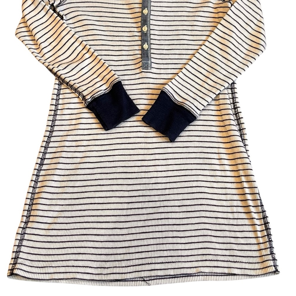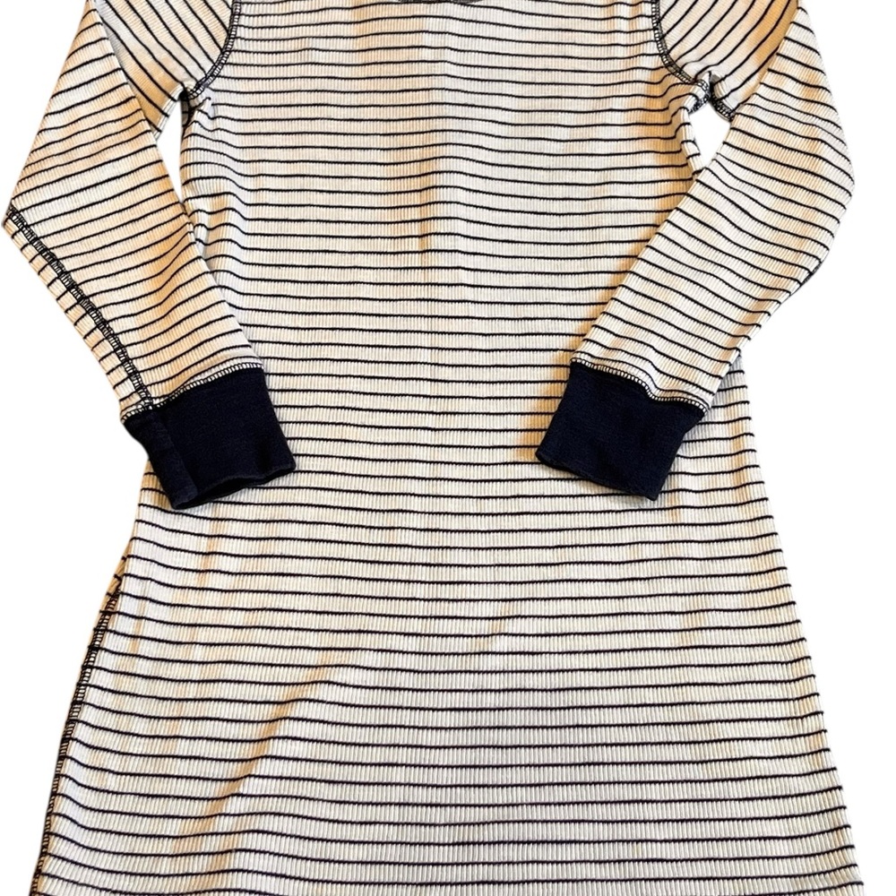 Easy to wear blue and white striped long sleeved dress