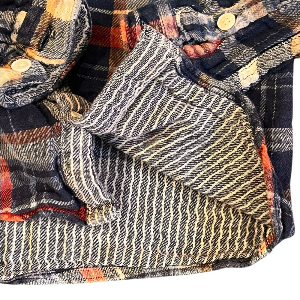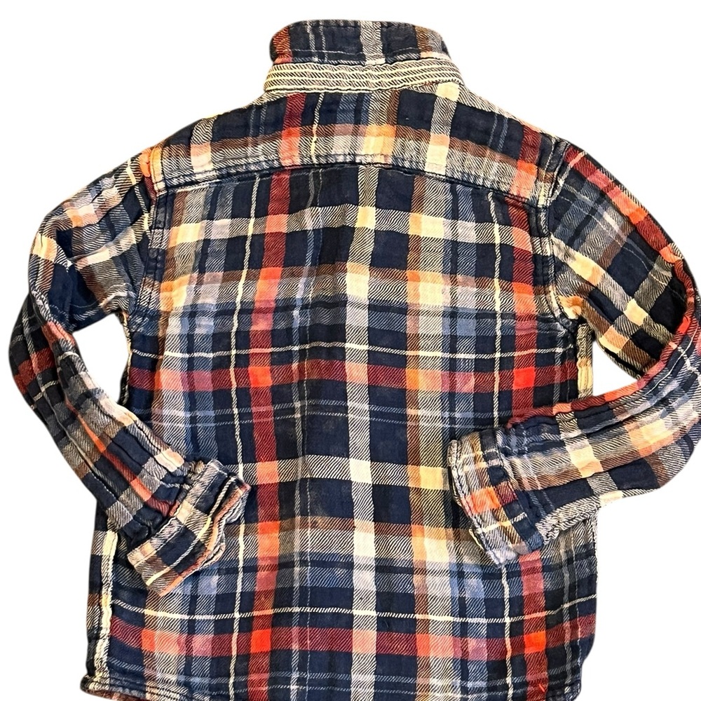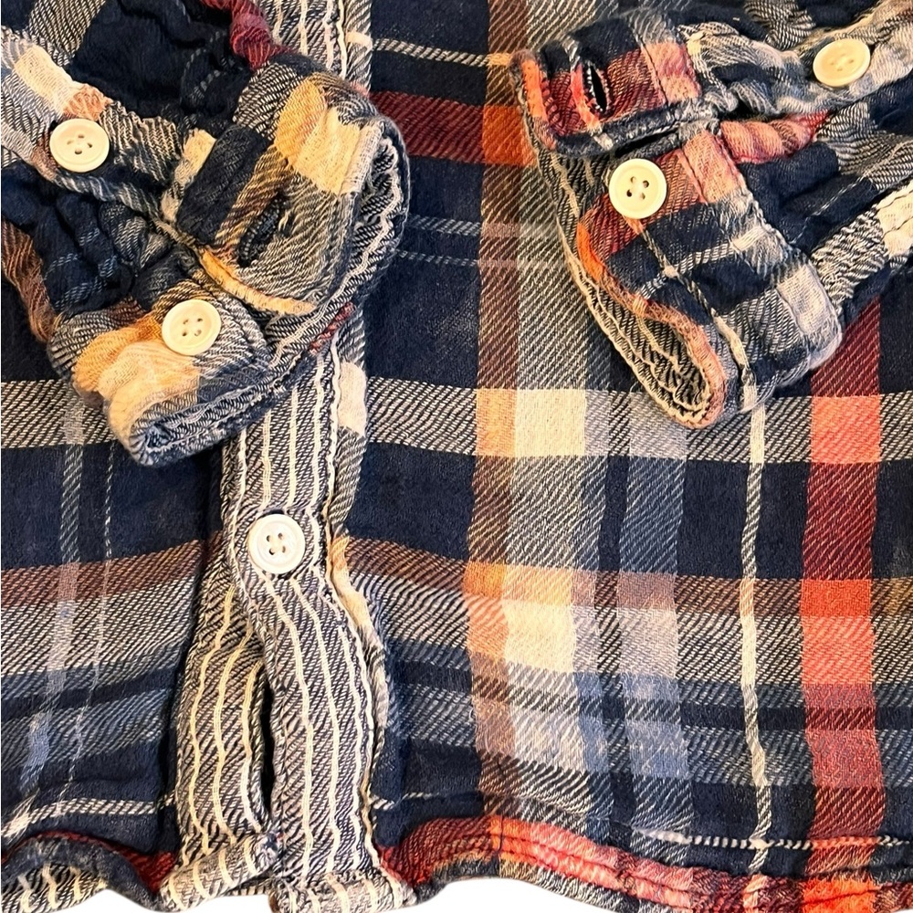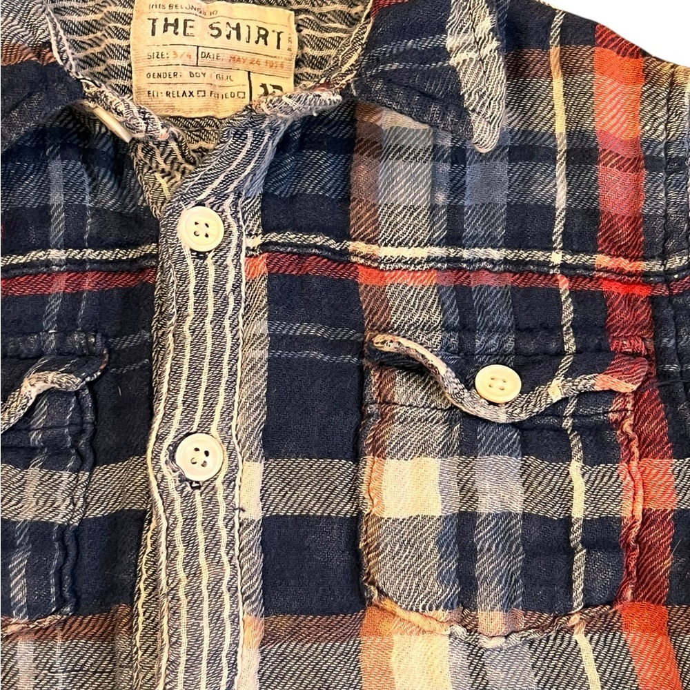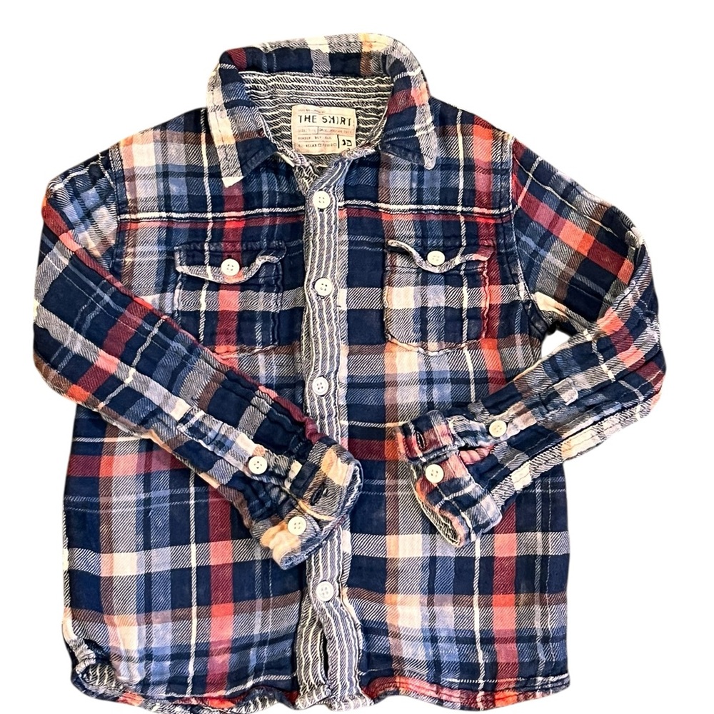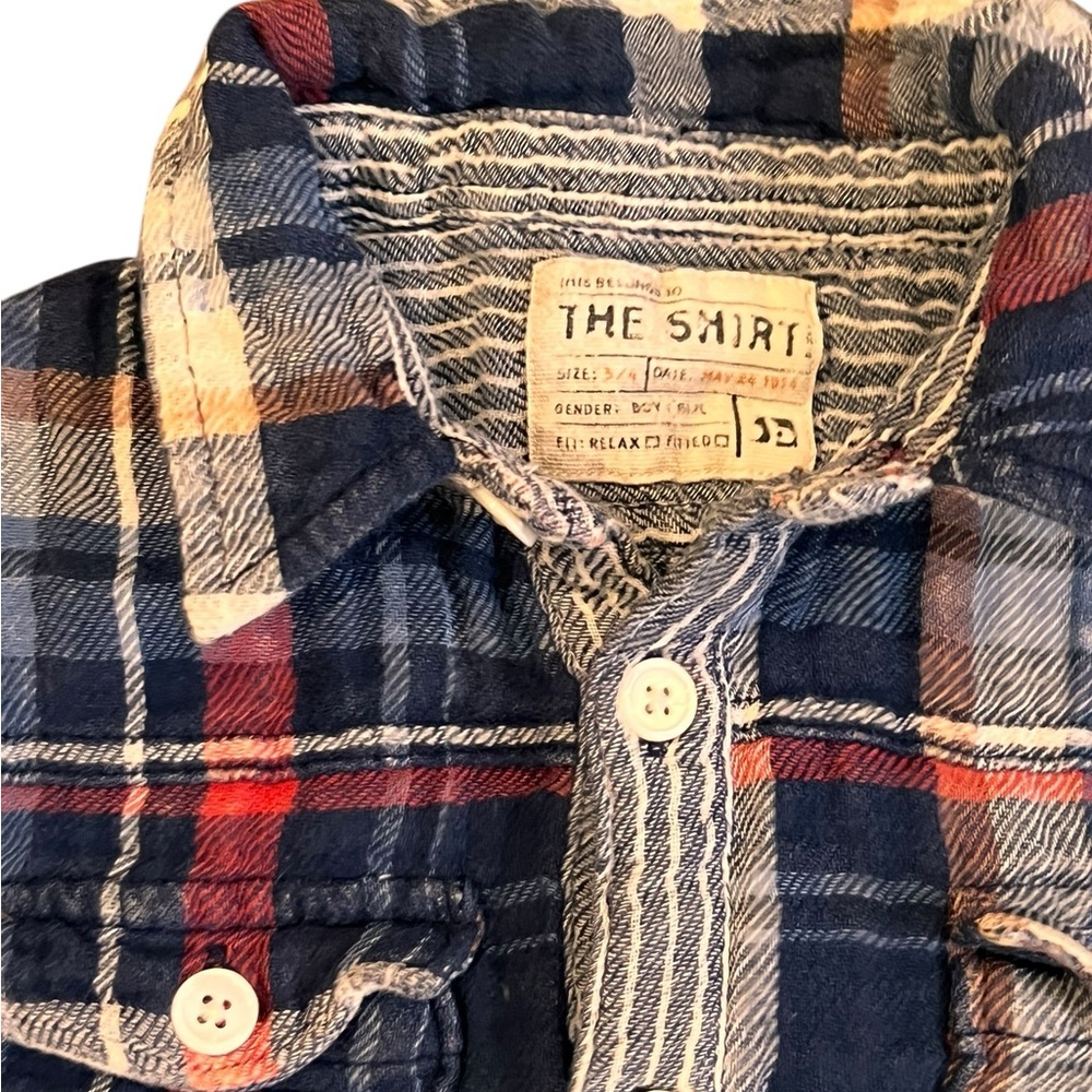 This stylish plaid button-down shirt for kids features a vibrant navy and red design