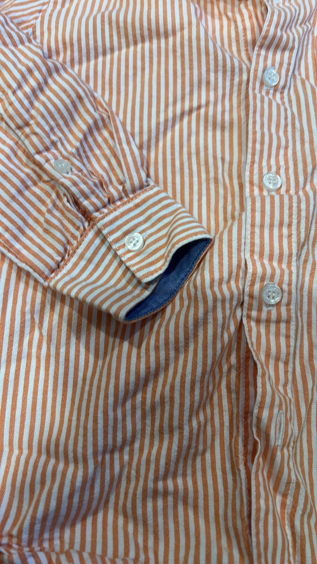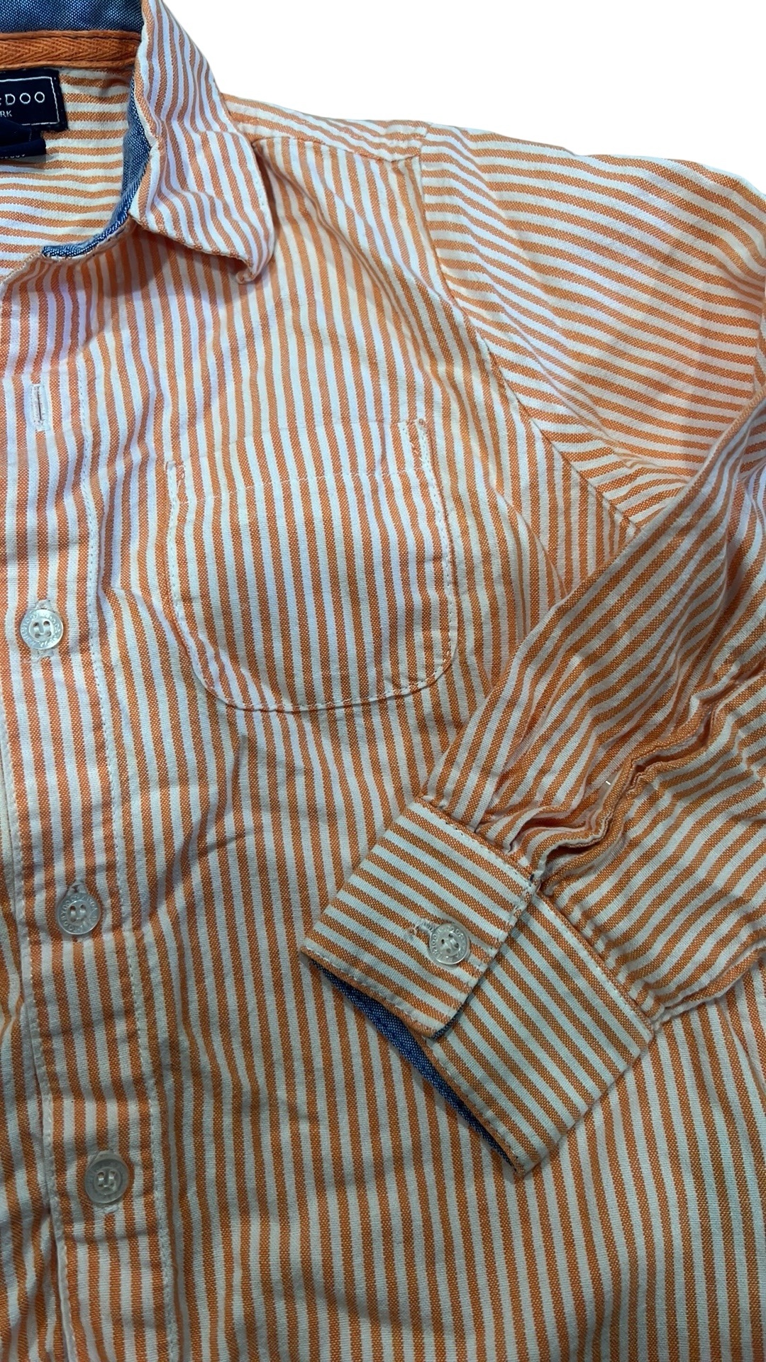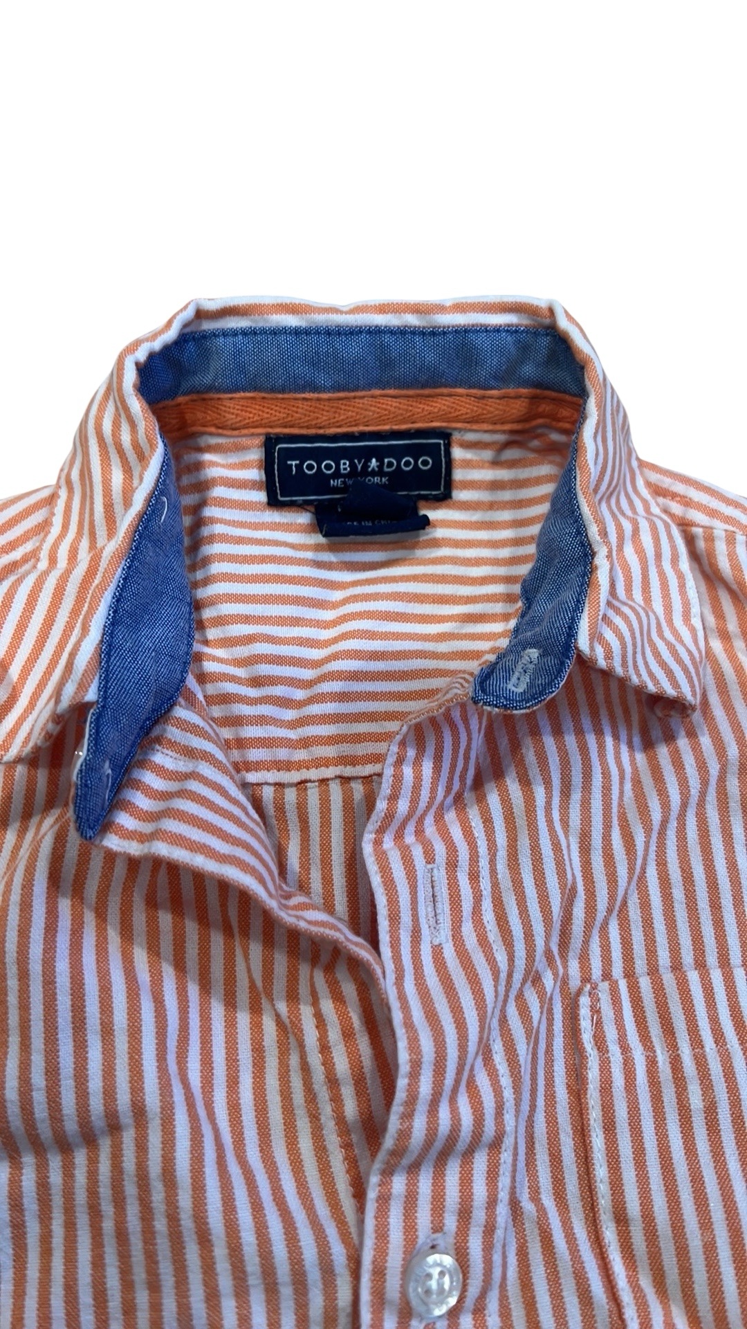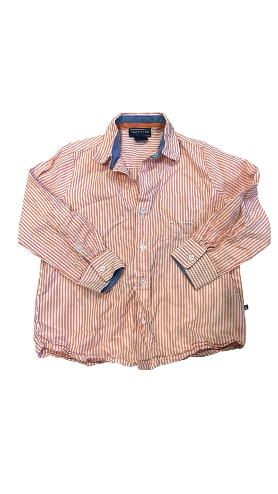 Orange and white striped long sleeved button up collared shirt. Tooby Doo. Size 4T